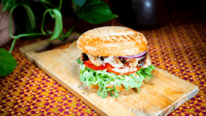 Falafele, Tabbouleh - couscous, pęczak, bulgur, soczewica. Hummus, pieczona cieciorka, papryki, Coleslaw, ogórki, mix nasion (chia, słonecznik, dynia) Z wegańskim majonezem Cajun. Pyszny mix roślinnego białka z cieciorki, humusu oraz nasion. Rozpuszczalny błonnik pobudza parasteltykę oraz pomaga w obniżaniu poziomu cholesterolu. Wysoka zawartość minerałów oraz kwasu foliowego. Energia z z Tabbouleh z niską zawartością cukru.